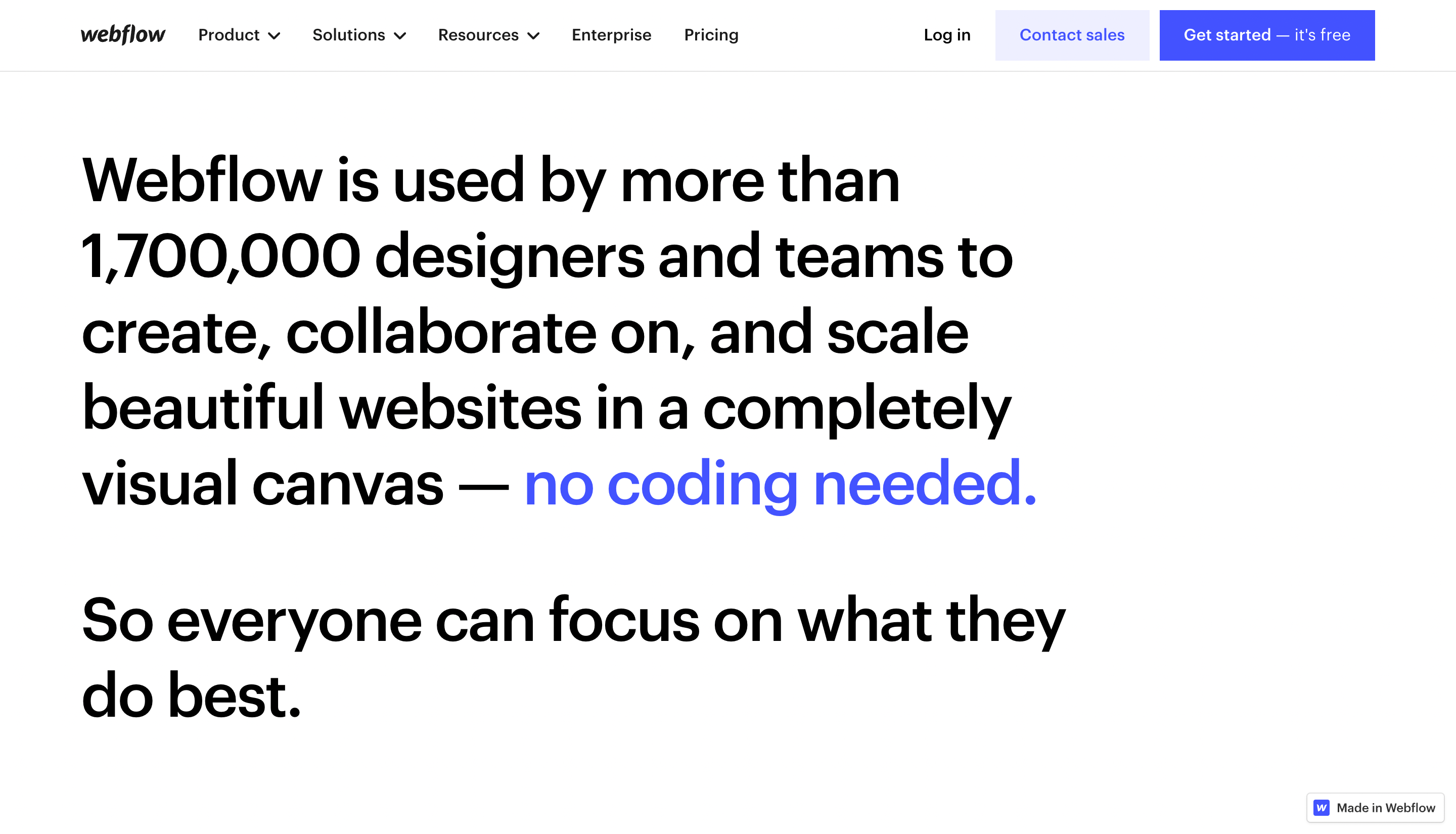 If you want to create a landing page, corporate website, event site, blog or e-commerce store, Webflow is the best platform.